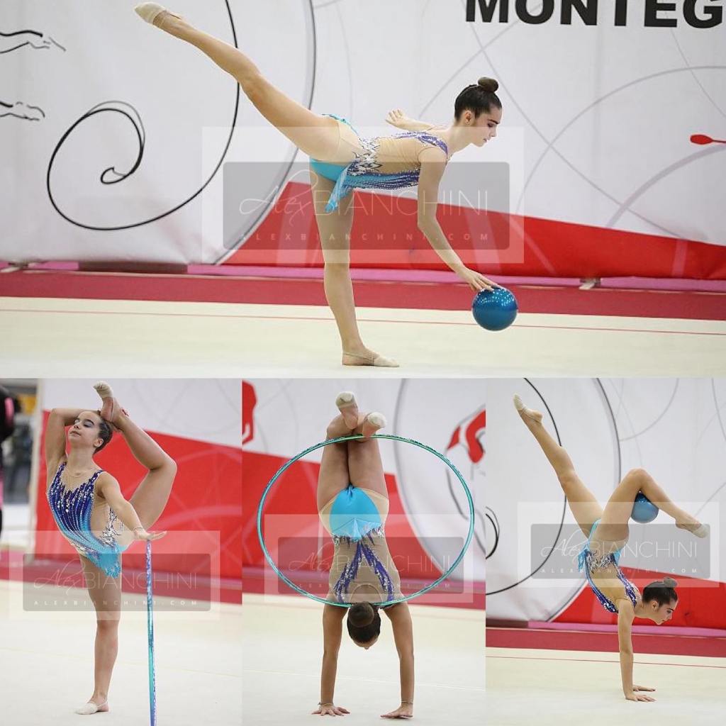 La prima a scendere in pedana giovedì 5 dicembre è stata Anna Sergiano nella categoria Junior 3 LE, il livello più impegnativo del programma Silver federale: Anna non solo è riuscita a vincere due medaglie d’oro negli attrezzi fune e cerchio e una d’argento alle clavette ma si è anche laureata campionessa nazionale di categoria grazie alla somma dei punteggi ottenuti.