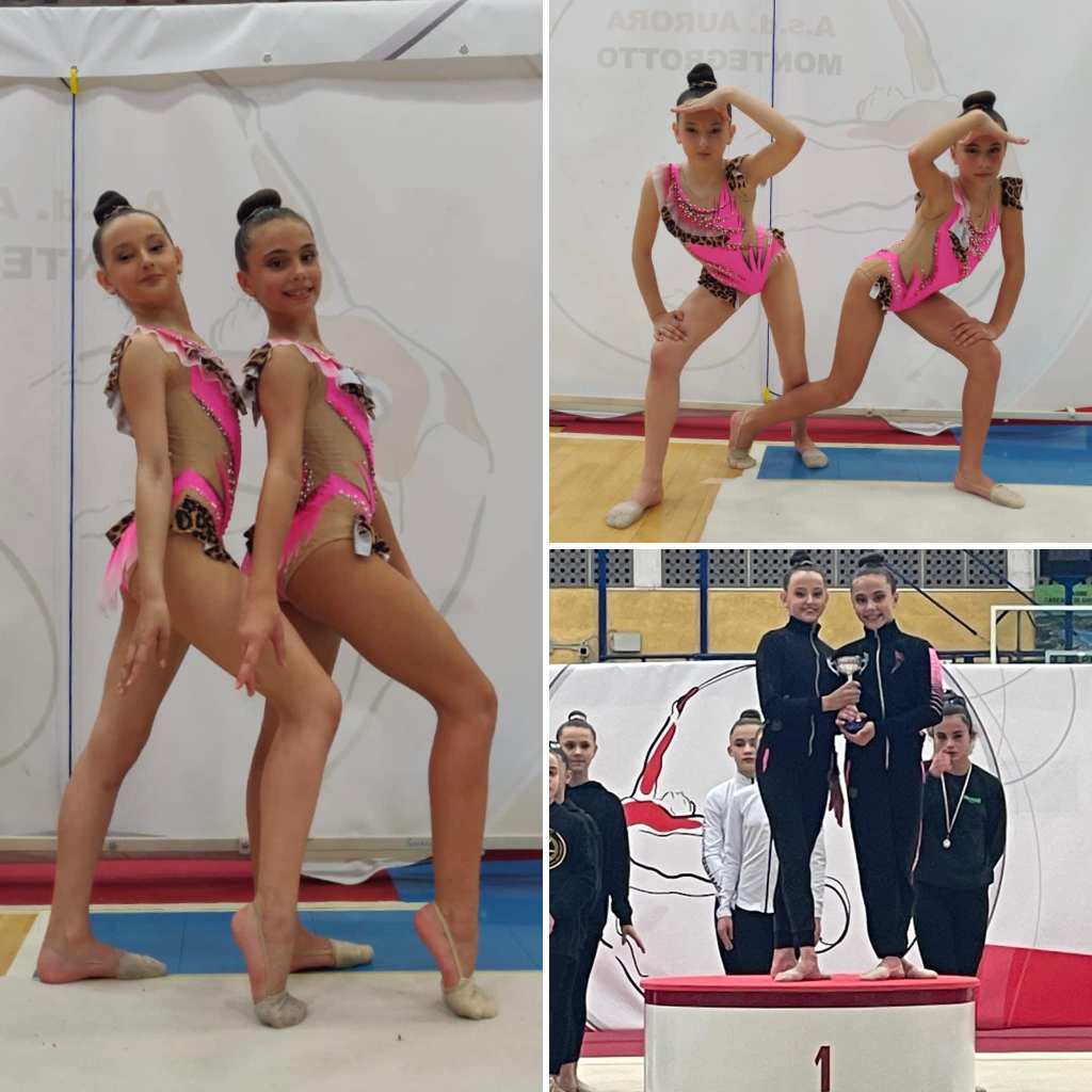 In particolare, Martina ha eseguito i suoi esercizi con palla e nastro vincendo la medaglia d’oro, mentre Anna, impegnata con cerchio e clavette, si è aggiudicata la seconda posizione.