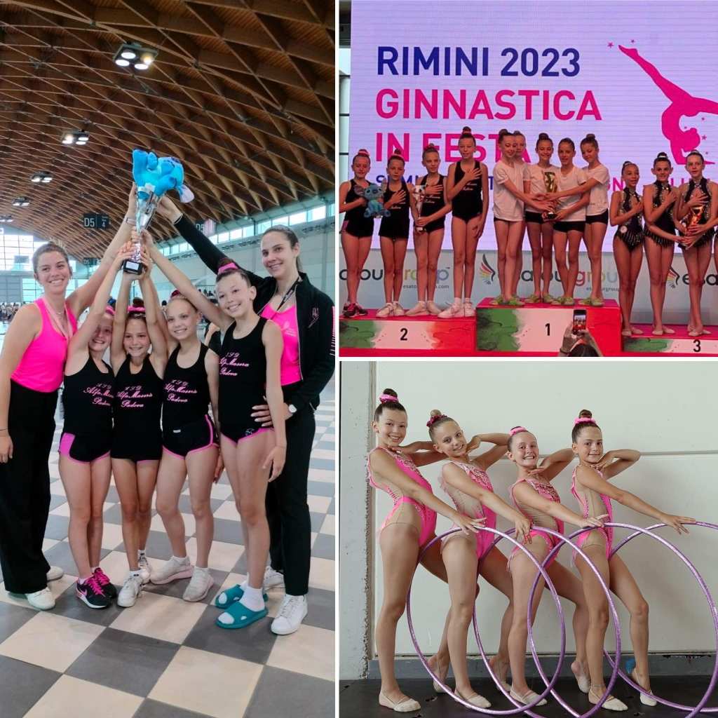 Ma le 23 atlete dell’Alfa Maserà scese in pedana nei campi di gara della ginnastica ritmica accompagnate dalle tecniche Francesca Sette, Francesca Nalin, Giada Bianzale e Sara Roman, tornano da Rimini con un risultato sorprendente: 17 MEDAGLIE (4 ori, 6 argenti e 7 bronzi) .